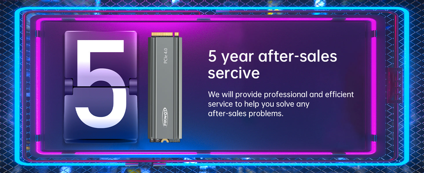 SSD ของ Fikwot มาพร้อมการรับประกันแบบจำกัด 5 ปี เรายึดมั่นในมาตรฐานการควบคุมคุณภาพที่เข้มงวดสำหรับผลิตภัณฑ์ของเรา โดยทดสอบฮาร์ดไดรฟ์แต่ละตัวอย่างเข้มงวดเพื่อให้แน่ใจว่าไม่มีปัญหาด้านคุณภาพก่อนที่จะจัดส่งถึงคุณ หากคุณมีคำถามใดๆ เกี่ยวกับ SSD นี้ โปรดติดต่อเรา ผลิตภัณฑ์มาพร้อมกับคู่มือการใช้งาน สกรู และไขควง