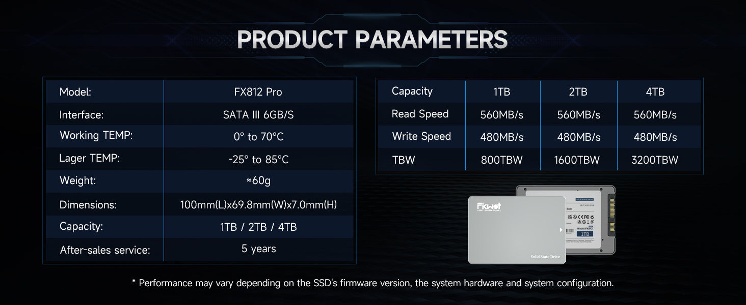 SSD ของ Fikwot มาพร้อมการรับประกันแบบจำกัด 5 ปี เรายึดมั่นในมาตรฐานการควบคุมคุณภาพที่เข้มงวดสำหรับผลิตภัณฑ์ของเรา โดยทดสอบฮาร์ดไดรฟ์แต่ละตัวอย่างเข้มงวดเพื่อให้แน่ใจว่าไม่มีปัญหาด้านคุณภาพก่อนที่จะจัดส่งถึงคุณ หากคุณมีคำถามใดๆ เกี่ยวกับ SSD นี้ โปรดติดต่อเรา